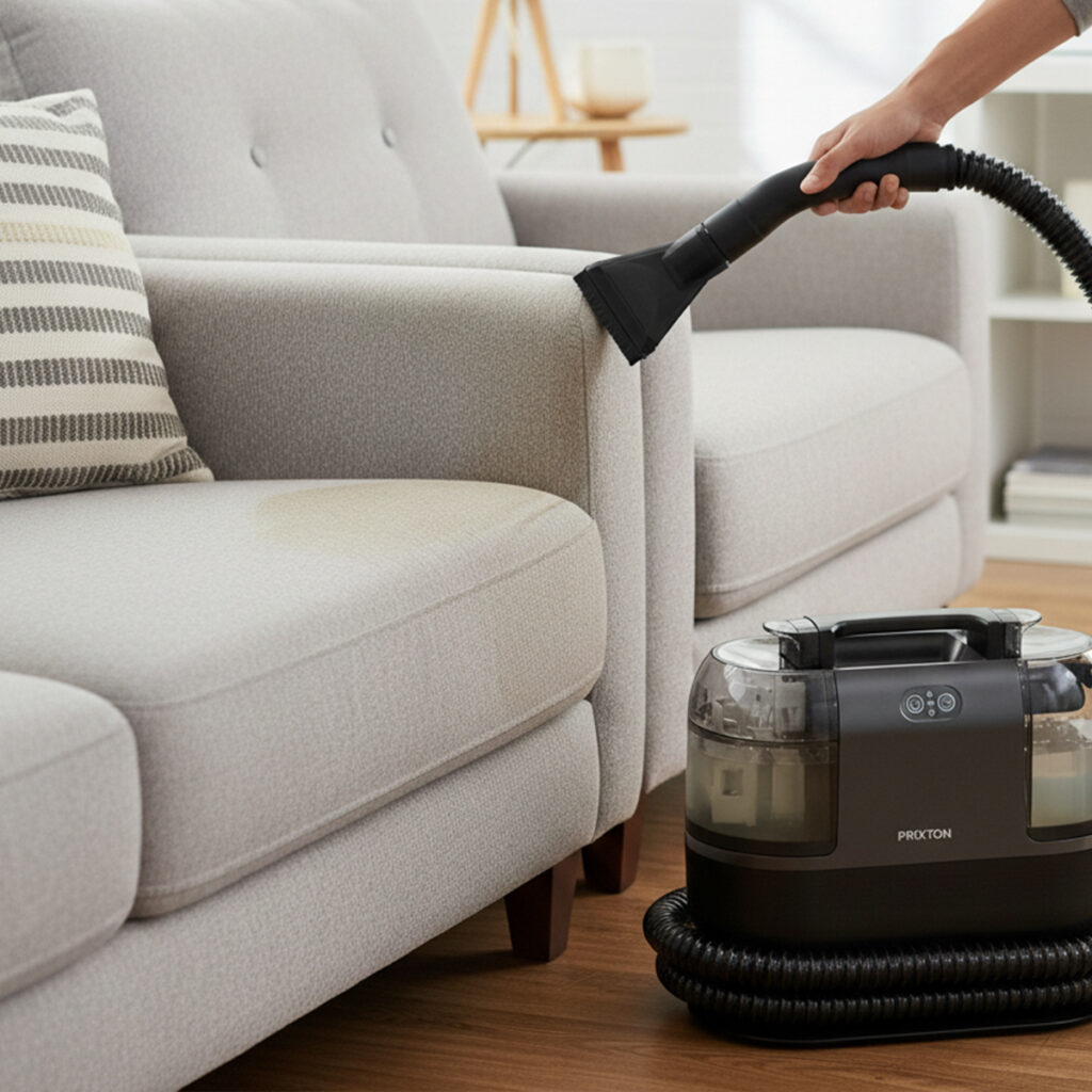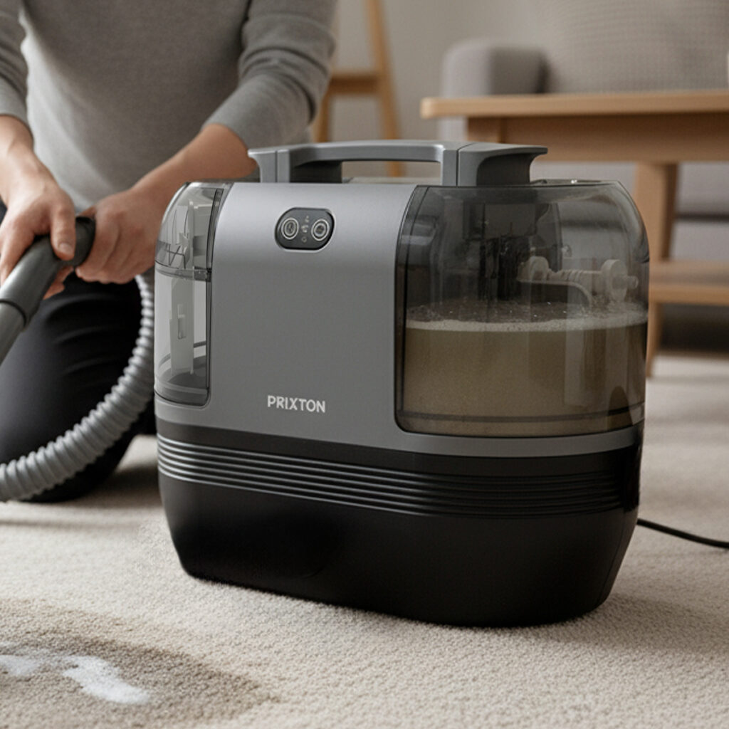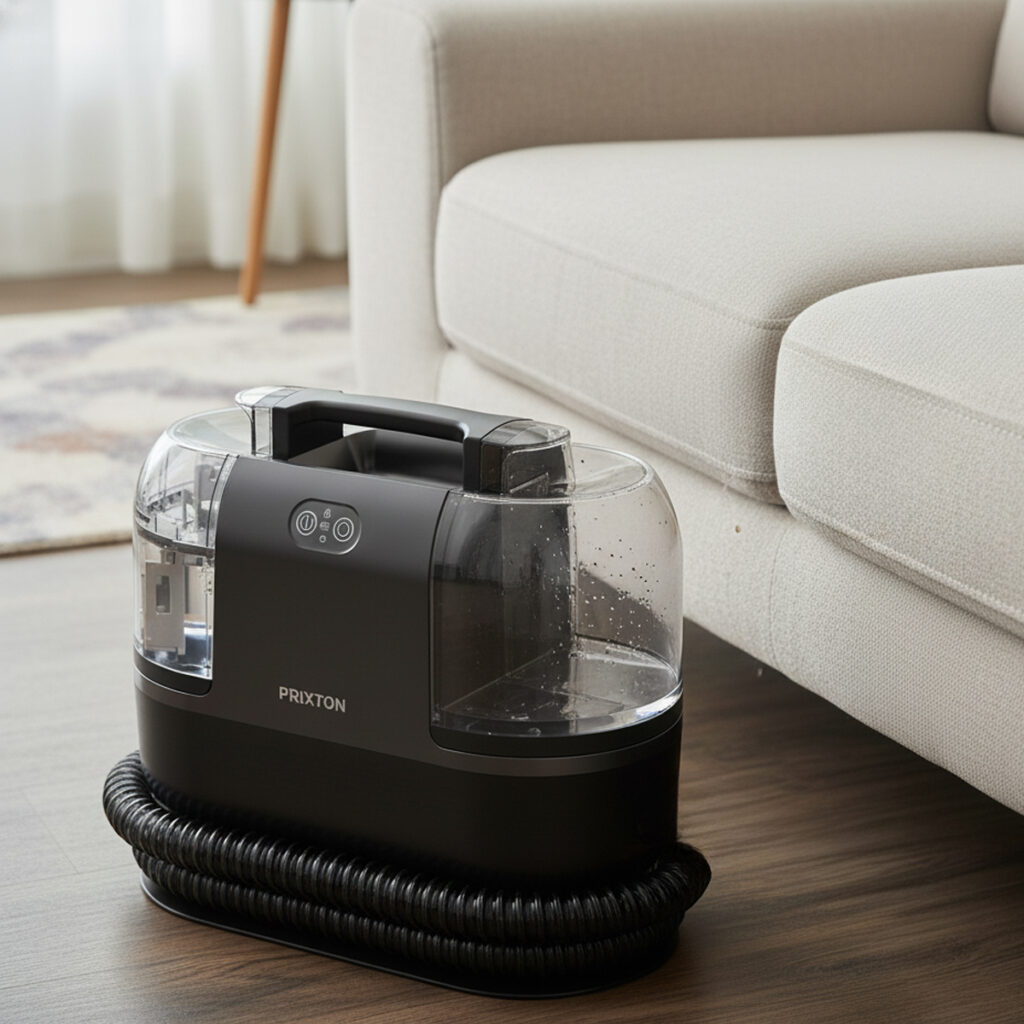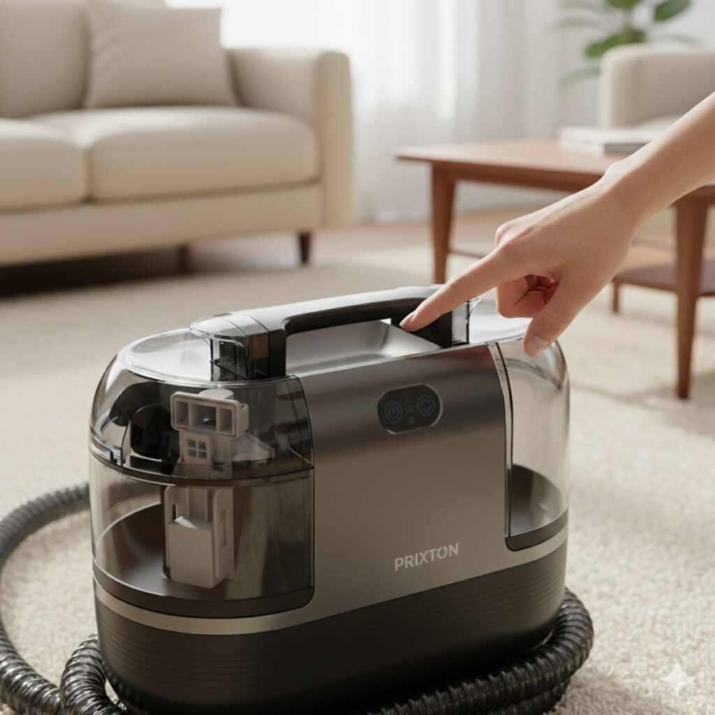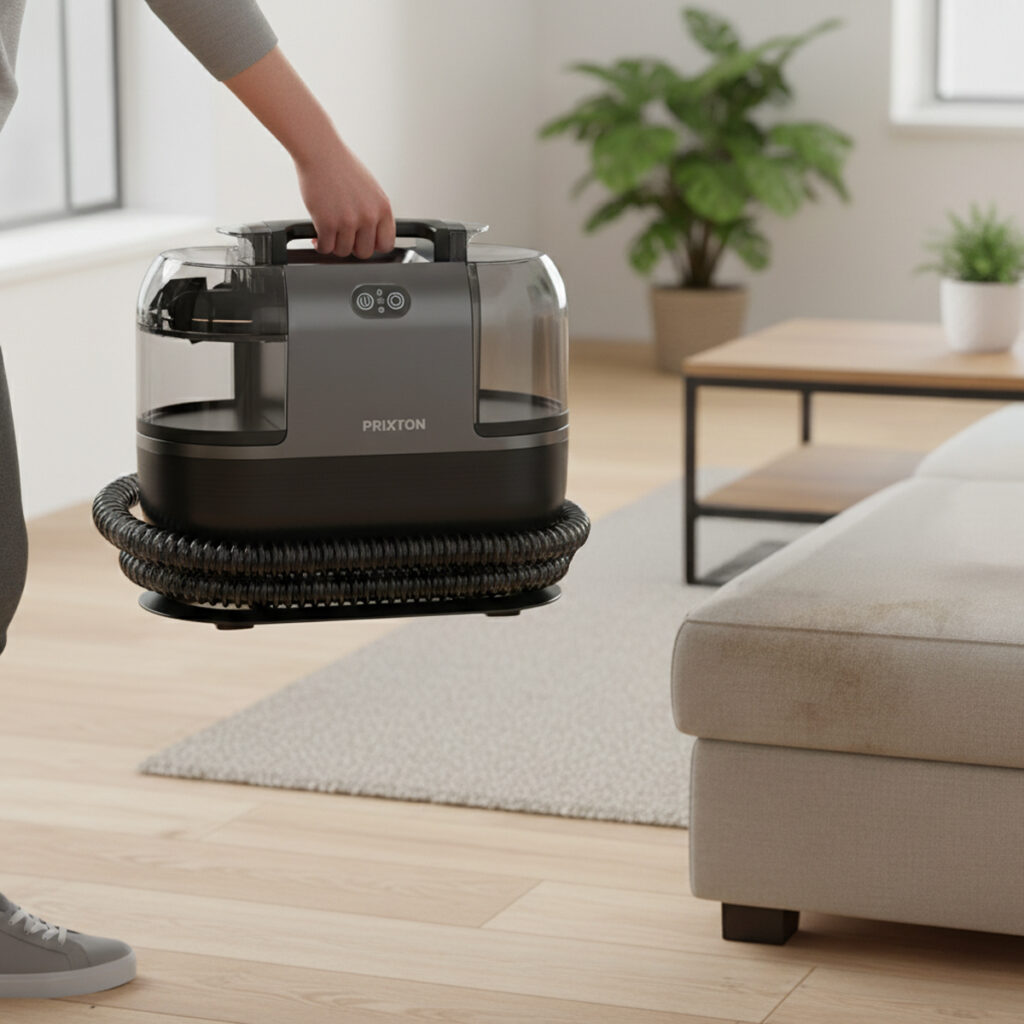 The AquaClean Steam Pro combines powerful suction, hot water, and steam to deliver effective cleaning on carpets, sofas, and household fabric surfaces, making it easier to remove embedded dirt and stubborn residues.