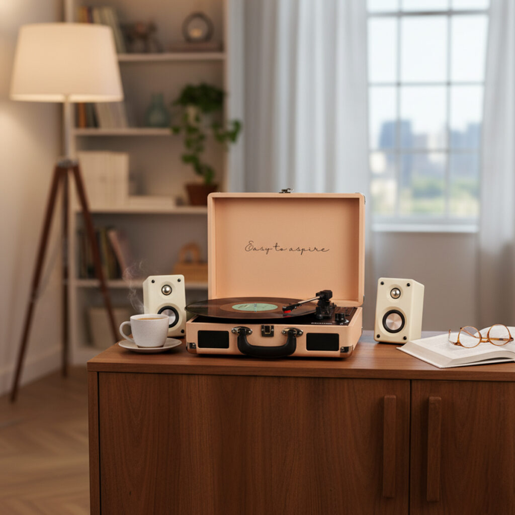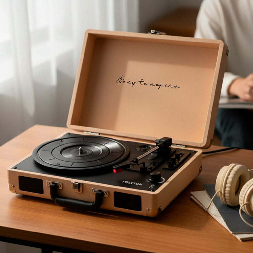 Play your favorite vinyl records or digitize them to WAV format with the VC400 turntable. Activate the wireless connection and connect your devices to enjoy your favorite music. Decorate your spaces with its vintage aesthetics, and transport it easily thanks to its briefcase design.