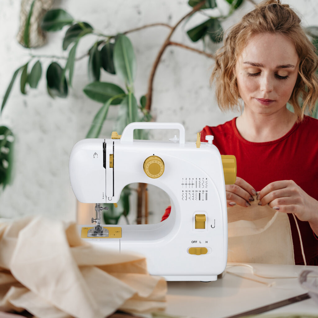 It integrates a hidden drawer to store threads, needles … and all the material you need to make the fabrics.