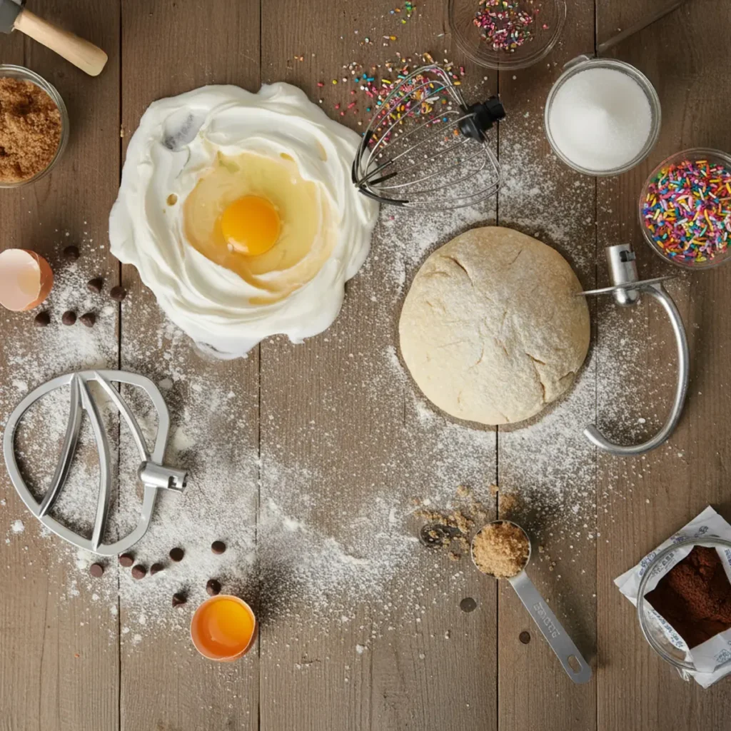 It comes with an aluminum beater, ideal for mixing dry ingredients such as flours, sugars, and spices; an aluminum dough hook, perfect for kneading denser doughs like bread or pizza; and a stainless steel whisk, ideal for whipping liquid ingredients such as eggs, creams, or sauces.
