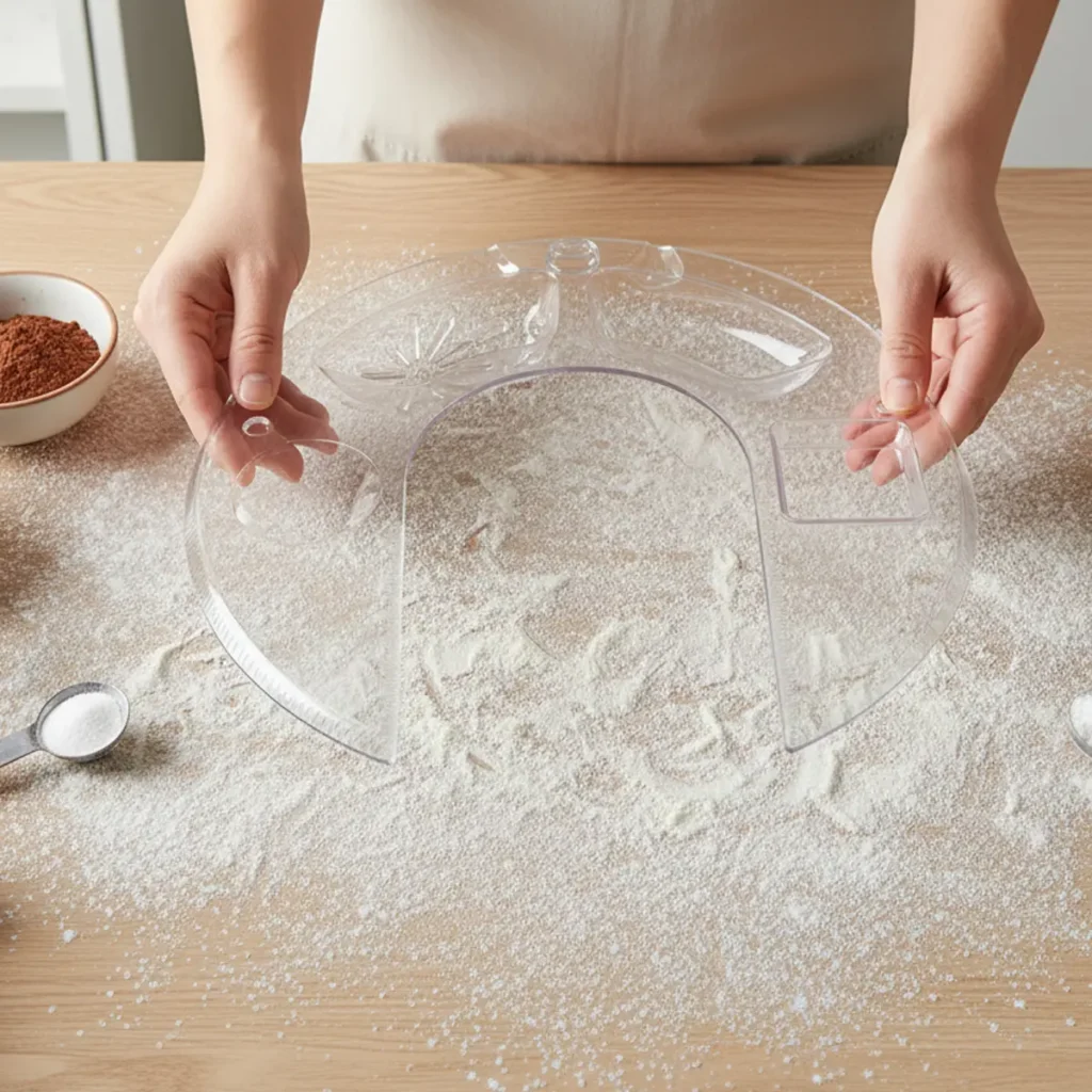 The bowl includes a protective cover designed to assist you while cooking, featuring molds and mini tools. Additionally, the cover has an opening that allows you to add ingredients while the mixer is in operation, speeding up the process without needing to stop the machine.